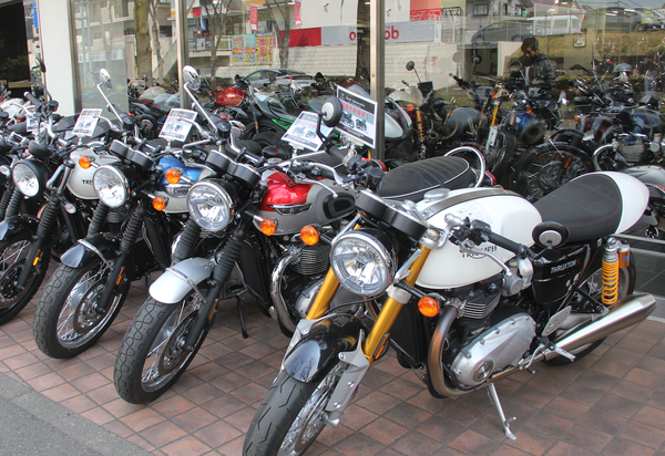 同店最大の魅力は、トライアンフの現行モデル16車種を試乗できること。