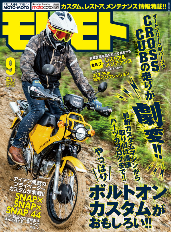 第一特集は、話題のモンキー125やカブシリーズのボルトオンカスタムを大特集! パーツメーカーの最新デモ車他、実際の取り付け工程をわかりやすくご紹介!