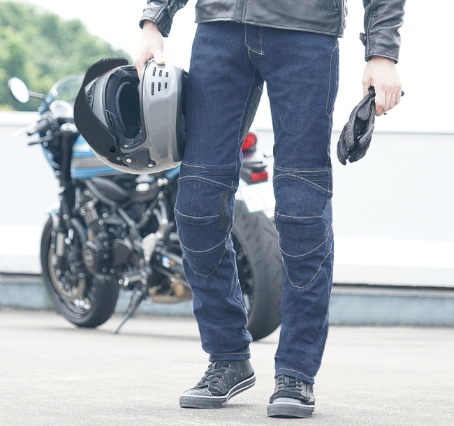 攻めのライディング(Easy In)、リラックス(Easy Out)の切り替えが自由自在な新感覚バイカージーンズです。