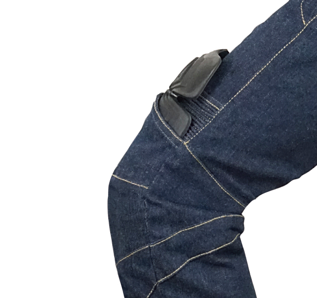 特徴的な外入れ仕様のニーパッドで脱着が自由自在。
