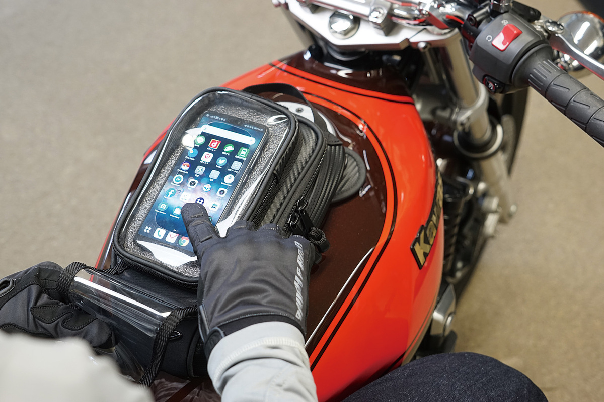 ライディング時はタンクの上に設置し、休憩のときにはすぐに取り外せるのでとっても使い勝手が良いです!