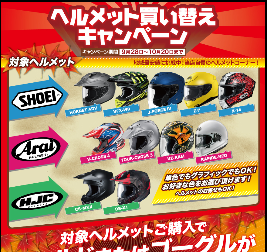 ヘルメット買い替えのまたと無いチャンス!! 是非ご利用下さい!