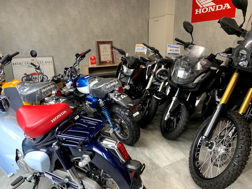 ホンダの車両をメインで扱う横山輪業さん、最近ではカブシリーズも人気車種でC125などの新車も揃っております。