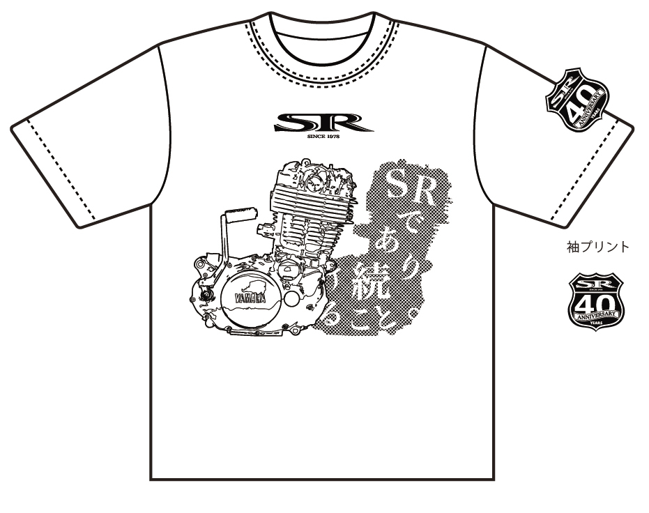 40周年記念Tシャツです。YAMAHAが守ってきたキーワード「SRであり続けること」をキャッチコピーに。