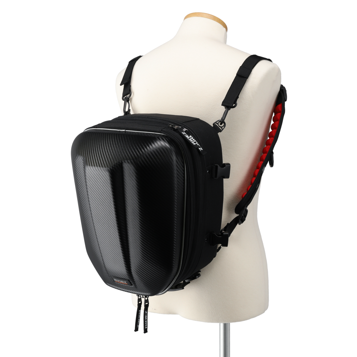 バイクを降りた後は付属のベルトでリュックにもショルダーバッグにもなるので持ち運びに便利!