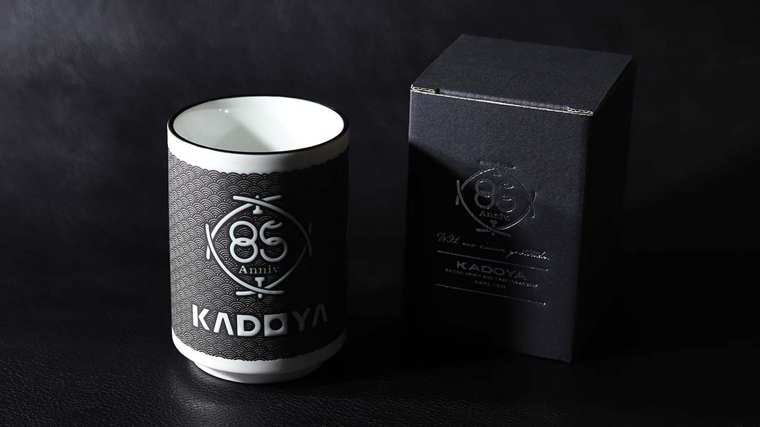 正面には『浅草かどや』が江戸文字にて施され、背面には『85周年限定ロゴ』