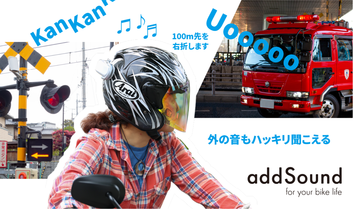 今回は「addSound」という新しいヘルメット装着型サウンド・システムのご紹介です。