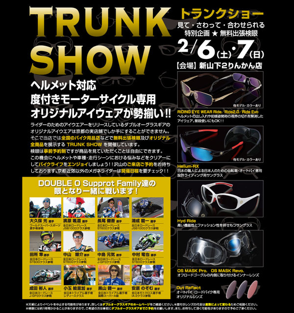 バイク乗りのためのアイウエアを取り扱っているダブルオーグラスギア。京都のお店を飛び出して、全国のバイク用品店で出張販売ツアーを開催中