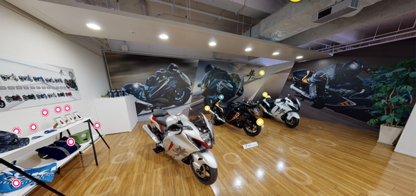 その他のバーチャルブースには、スーパースポーツ&レース、オンロードスポーツ、アドベンチャー、250クラスオンロードスポーツ、スクーターのルームがあり、各部屋に入るとそれぞれのテーマに沿ったスズキのバイクがお出迎えしてくれます