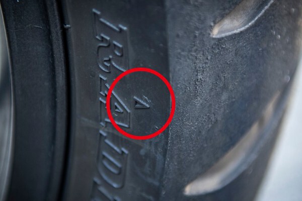 一般的なバイクのタイヤには、サイドウォールの部分に「△」マークが数ヶ所刻印されています。
