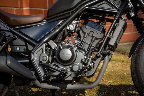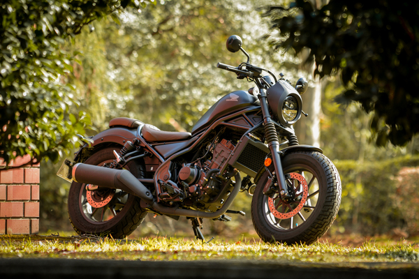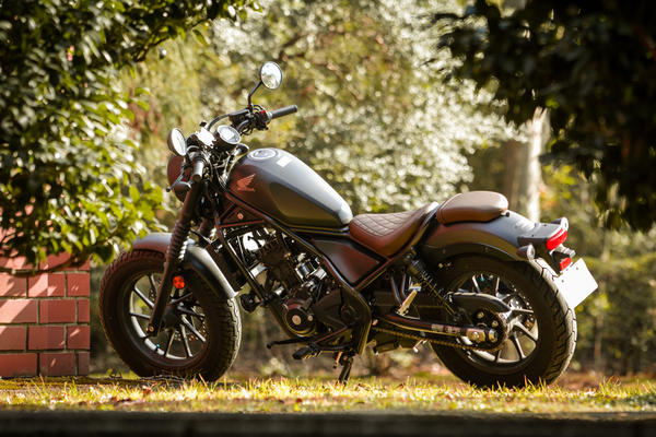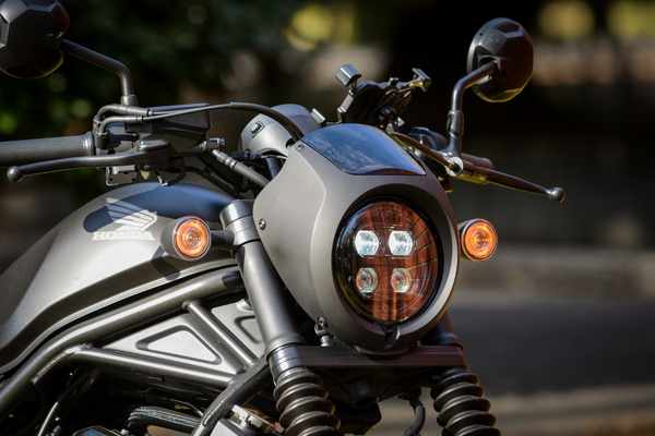 レブル250 Sエディションはヘッドライトカバーやフォークブーツなどノーマルのレブルをベースにオプションパーツが装着され、車体と同色にブラックアウトすることで迫力あるスタイルを実現しています。