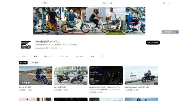 HondaGOの公式YouTubeチャンネル「HondaGO チャンネル」では、Hondaのバイク動画が多数アップされています!