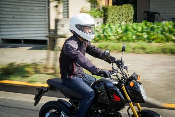 「グロムは跨った時に上半身の前にはほぼ何も無い状態になります。これがフルサイズのバイクだったらタンクやハンドルが来るんですが、それが無いおかげで視野が広く感じました。ポジションも前傾ではなく直立で真っ直ぐ前を見て運転するので、ポジションだけで言ったら50cc原付きスクーターとあんまり変わらないくらいストレスフリーでした」