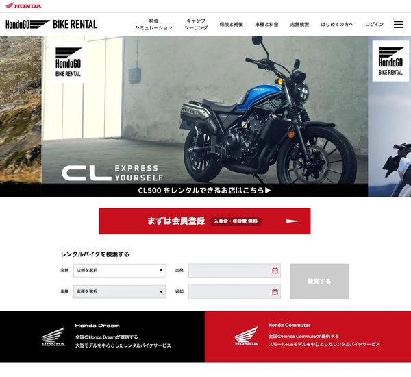 まず、HondaGO BIKE RENTALの利用には、レンタル予約や料金決済まで、すべての手続きをインターネットで行えるようになっています。