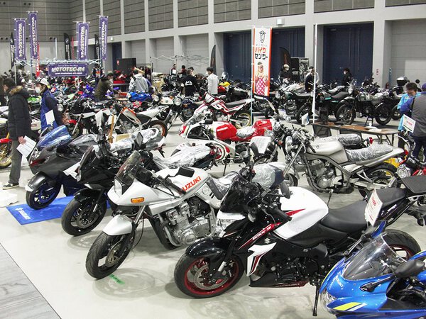 国産、輸入車のニューモデルの展示や、中古バイクも大展示即売!