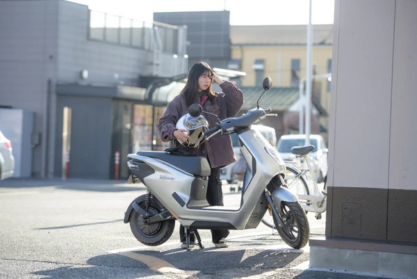 高橋さんは EM1 e: の企画で初めて原付に乗りました。