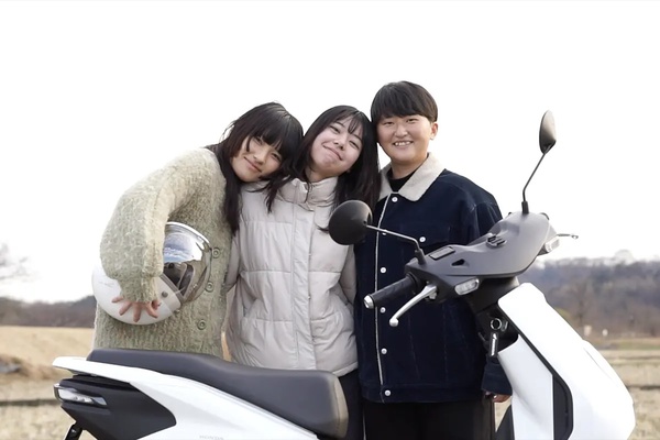 クラスメートの高橋さんが原付の EM1 e: に乗るとき、たまたま遊びに来ていたのです。