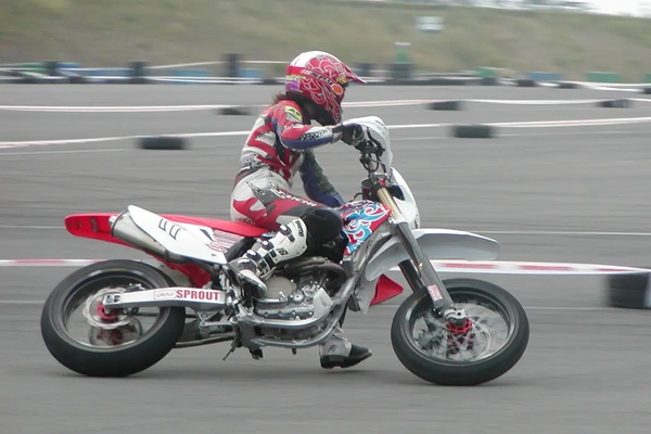 2000年代にはバイクショップを営むご主人と一緒に自らもライダーとしてスーパーモタードのレースやイベントへ積極的に参加。