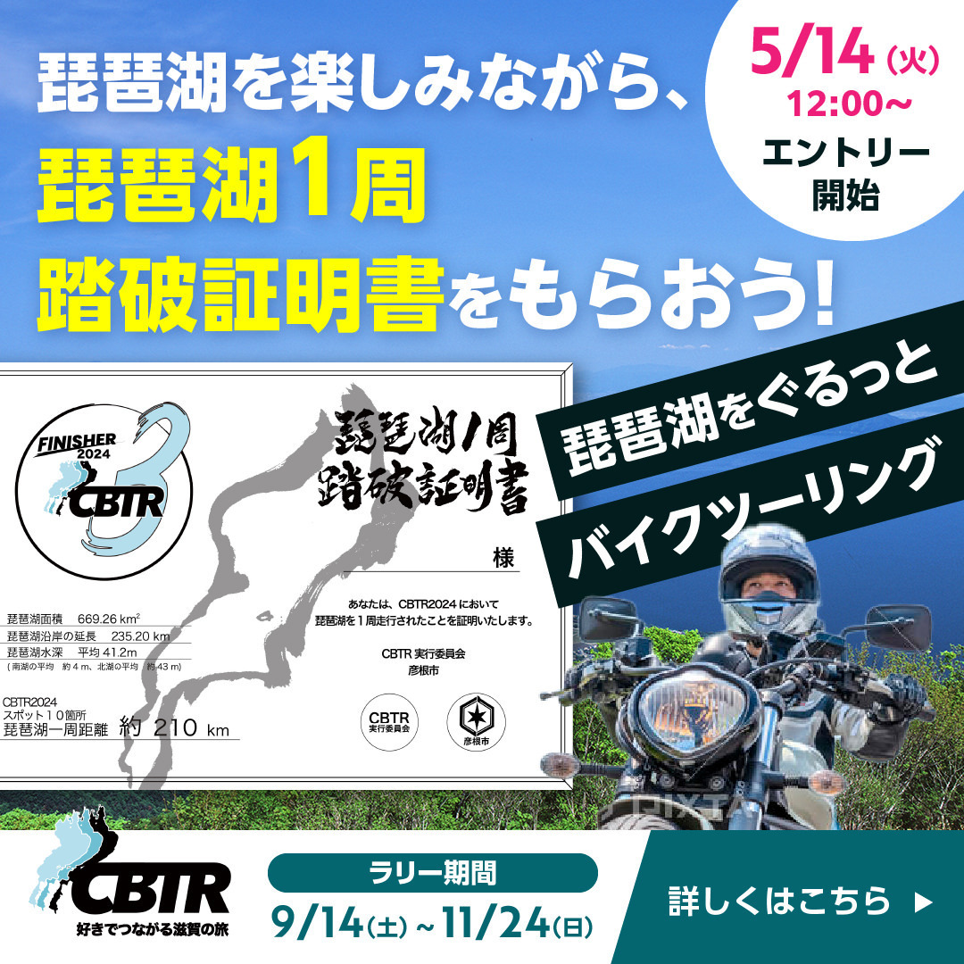 滋賀県の琵琶湖をバイクで1周しながらデジタルスタンプを集めるバイクツーリングイベントCBTR2024 (主催:CBTR2024実行委員会、運営:(株)ご当地ツーリング)に、滋賀・琵琶湖の魅力をSNSで発信するための公式マスコットバイクが登場。マスコットバイクの名前を一般公募を行うことが決定しました。