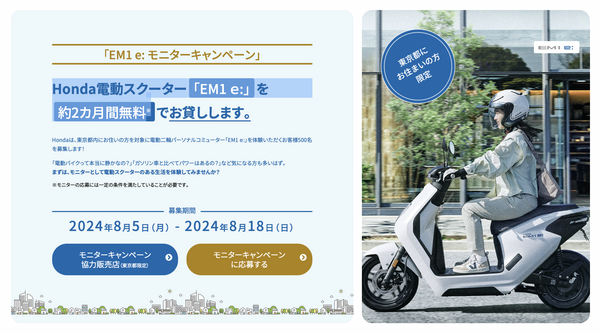 Honda電動スクーター「EM1 e:」が約2カ月間無料で借りられる!?