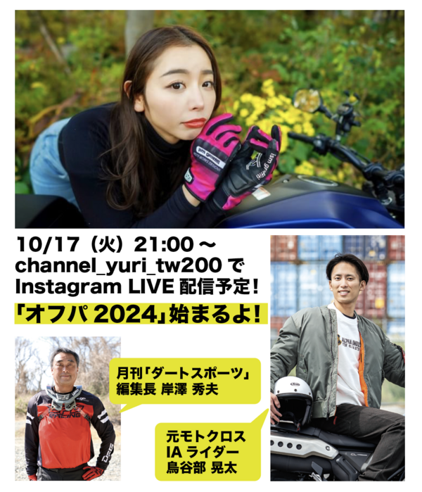 「オフパ」のゲストにも来てくれるバイク女子のYURIさんと、元全日本モトクロスIA2クラス 鳥谷部 晃太さん、そしてDIRT SPORTS岸澤編集長の対談を通して徹底解説!