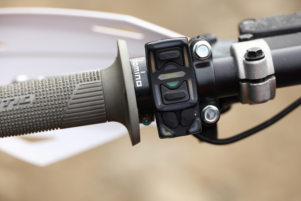 左手元でソフト(上)、スタンダード(下)マップと、9段階のトラクションコントロール(TC)変更が可能です。TCはLEDの表す数値で確認可能。ぜひモータリストスタッフの方に操作方法を教わりながら体感してみてください