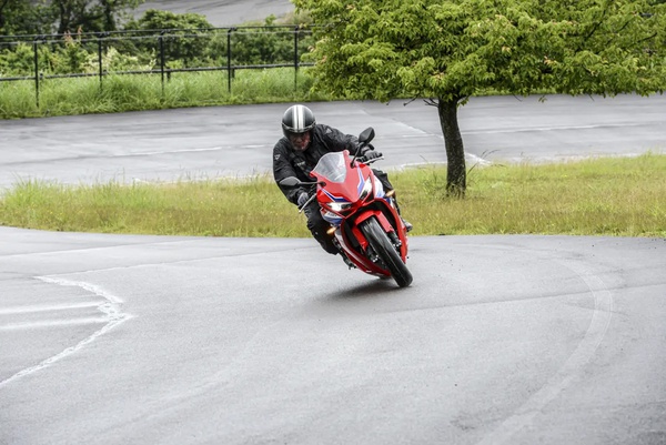 試乗時は雨でしたが、コーナリング中のシフトダウンでも姿勢が乱れることもありませんし、高回転からのシフトダウンでもショックがありませんでした。