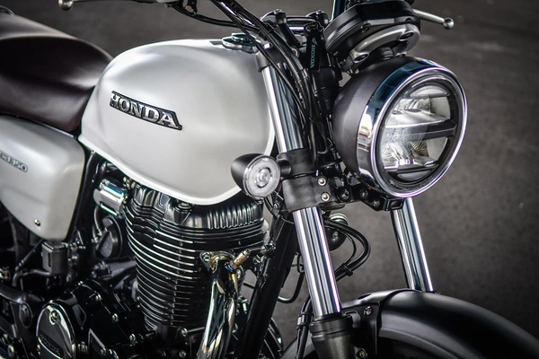 GB350 Cとスタンダードモデルのヘッドライトは2台ともにLED仕様なのですが、実際に見ると実はけっこう違いがあります。