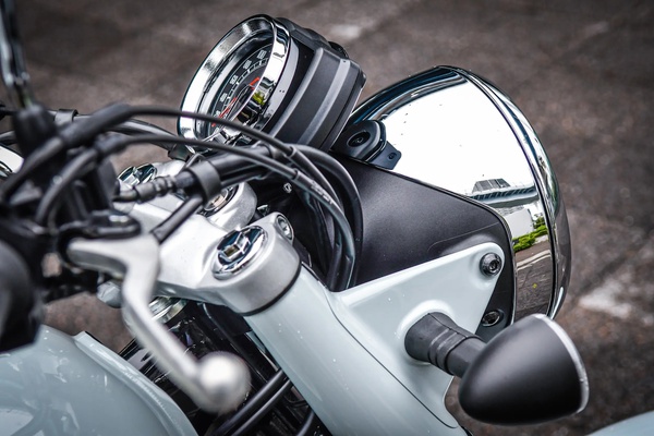その理由は最たるものはヘッドライトカバーで、GB350 Cは優美な曲線を描く大型のクロームメッキのカバーを装着。これにより高級感がアップしているだけでなく、ヘッドライトの形状自体が丸みを強調したクラシカルさを演出。ヘッドライトのマウント方法も違うので、見た目に大きな印象の違いをもたらしています。GB350 Cは高級感がスゴい……