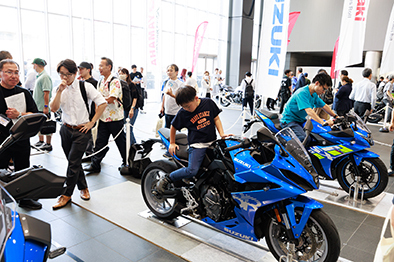 国内4メーカー(KAWASAKI、SUZUKI、HONDA、YAMAHA)の最新バイクや特別なマシンの展示、アパレル展示、ヘルメット・プロテクター展示等に加え、ステージショーも行います。