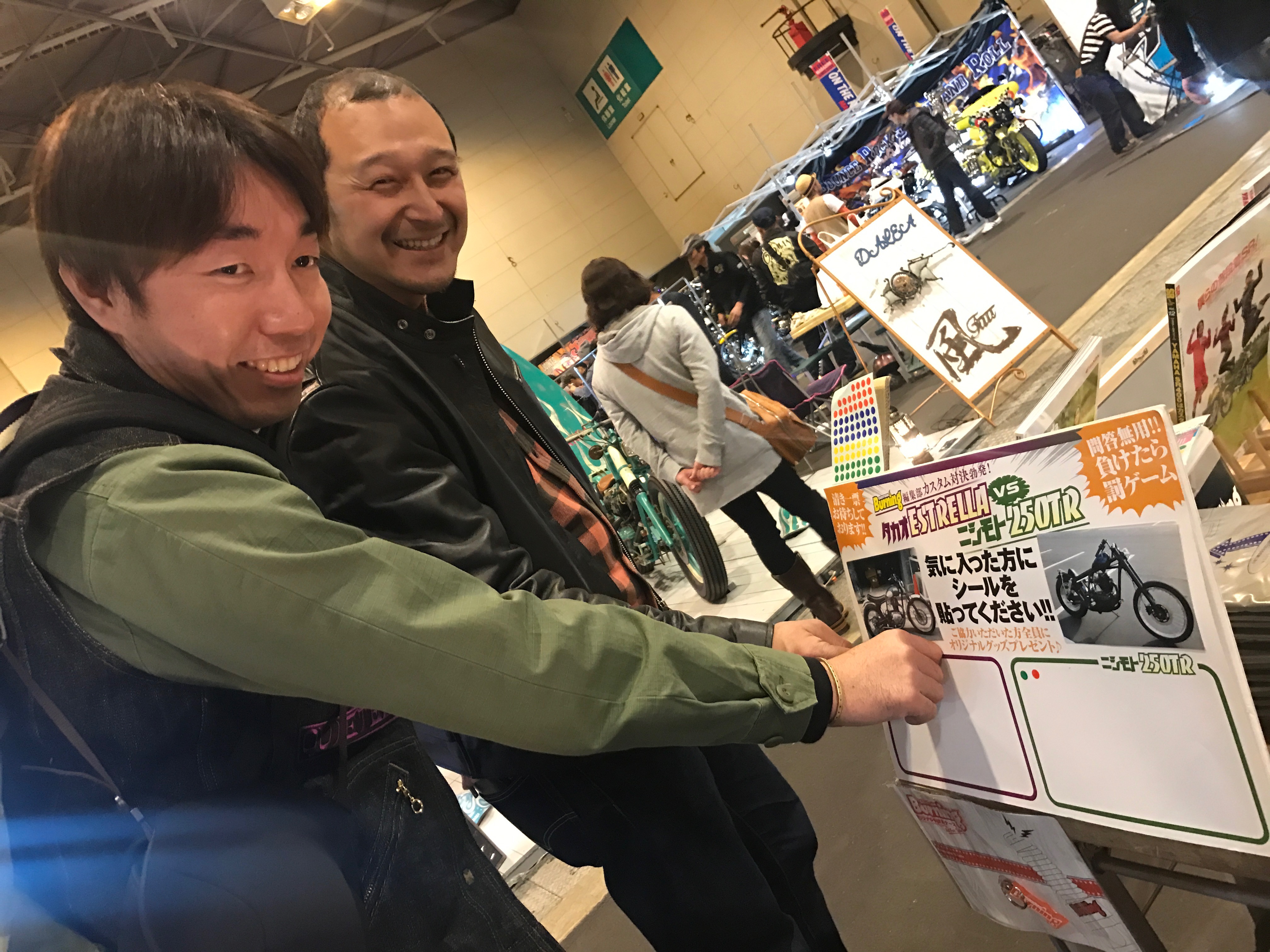 連載企画、編集部カスタム対決で製作した車両2台を展示させていただいたジョインツinバーニングブース、