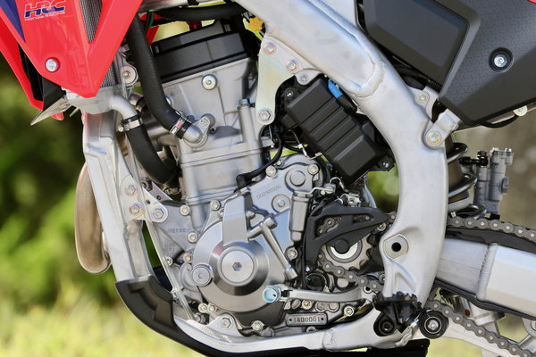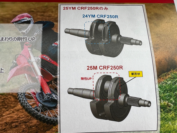 エンジンに関しては450/250と共に出力ピーク以降の出力向上、タイトコーナーの出口でのスロットルレスポンスを向上させています。クランクシャフトは形状変更により、クランクピン周りの剛性もUPされています。これにより燃焼時のフリクションが低減。スロットルコントロール性の向上、加速性能の向上、高速域出力向上が見込まれています。