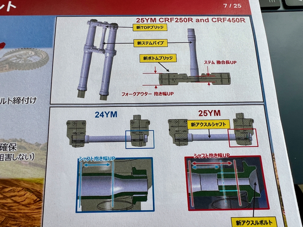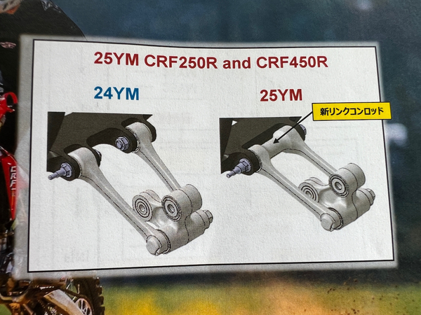 こちらはオーナー、ショップ、チームメカニックにも喜ばれているポイントだと思いますが、リアクッション取り外しが、サブフレーム、エアクリーナーBOXを外さずにできるようになっています。部品取り外し点数が8点(24)→5点(25)。