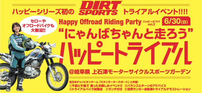 『ダートスポーツ』ハッピーシリーズ初のトライアルイベント、6/30ハッピートライアル@岐阜県上石津モーターサイクルスポーツガーデンの開催日が迫ってまいりました。