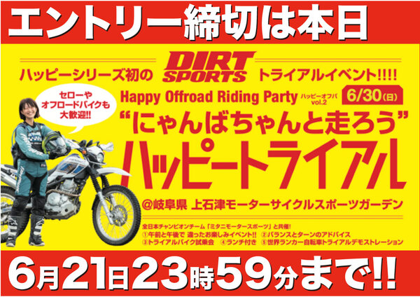 ダートスポーツ初のトライアルイベント、トレールバイクも大歓迎、『ハッピートライアル』@6/30