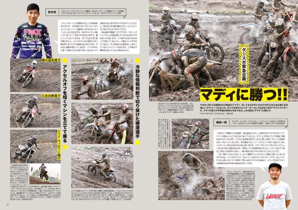 本号は「マディに勝つ!」というテーマで、全日本モトクロスやマディライテク、マディ対策装備などを紹介。まれにみるマディ決戦となった全日本モトクロスHSR九州大会はレースレポート、マシン紹介、人物インタビューなど今月も盛りだくさんです。
