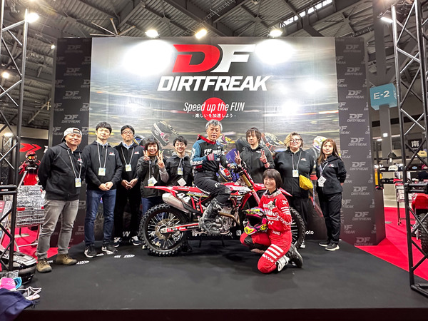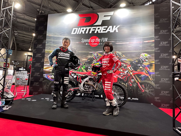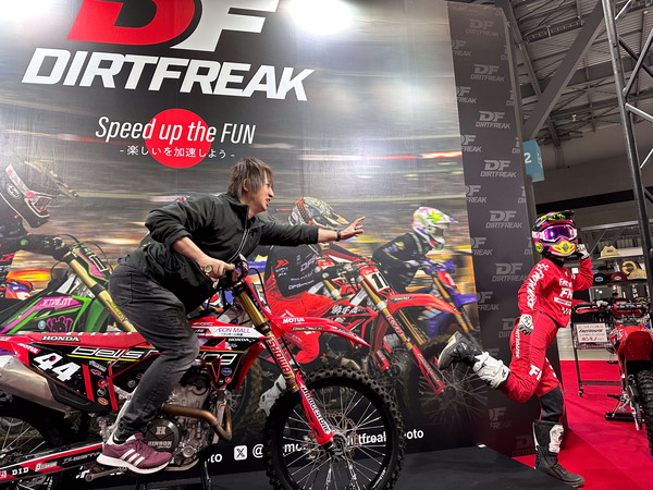 トップ画像でわかる通り、ダートフリークブランドDFG装備を着用するライダースタートシーンパネル&小島庸平選手のCRFが展示される撮影スポット!