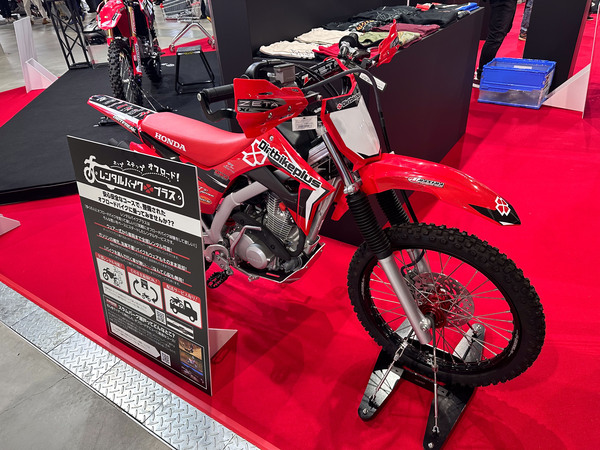 そして東京モーターサイクルショーにも展示されたHonda CRF250Lモタード仕様。新製品パーツも装着されています。現行のCRF250Lにはモタードがラインナップしていないので注目度も高かったようです。