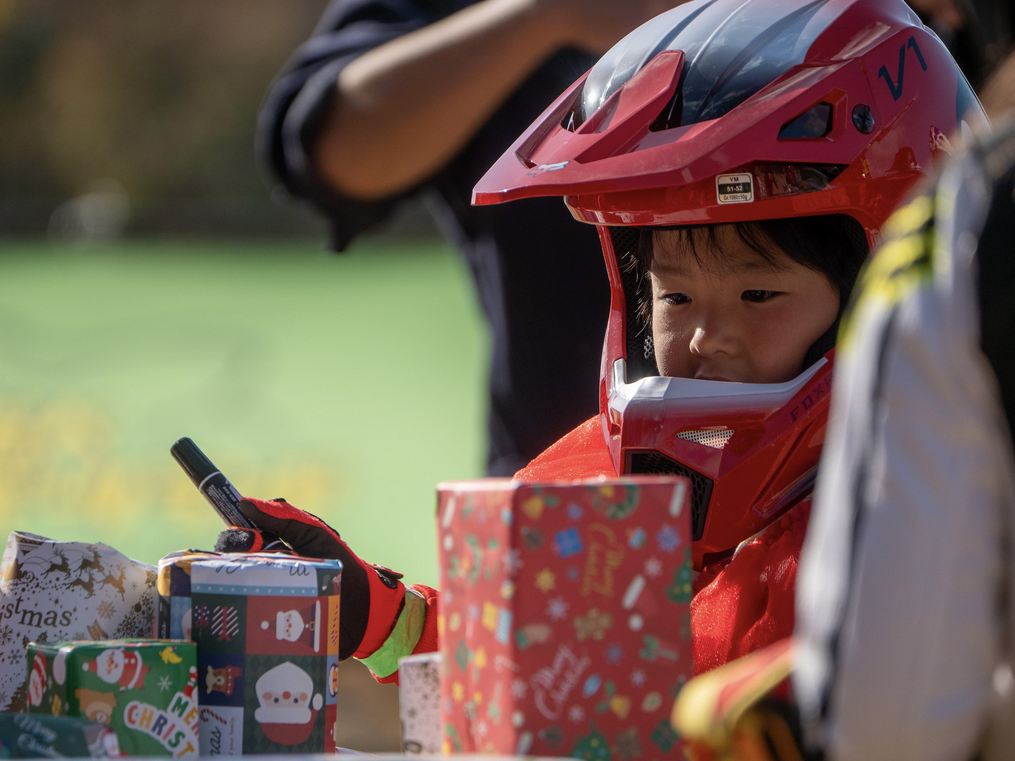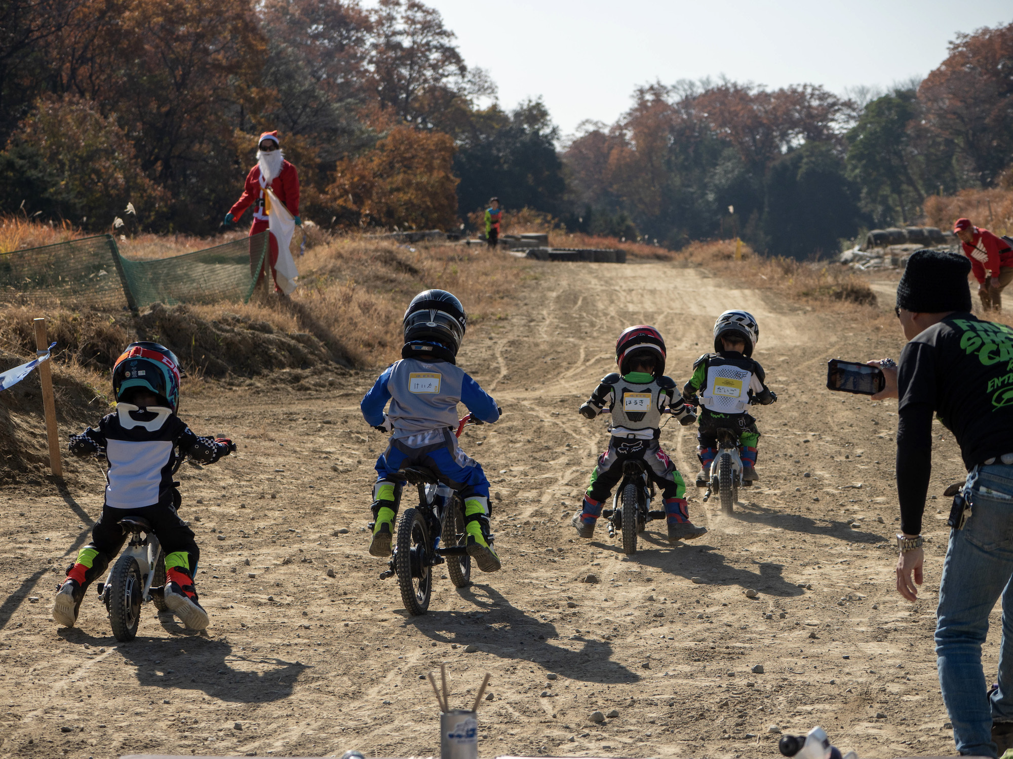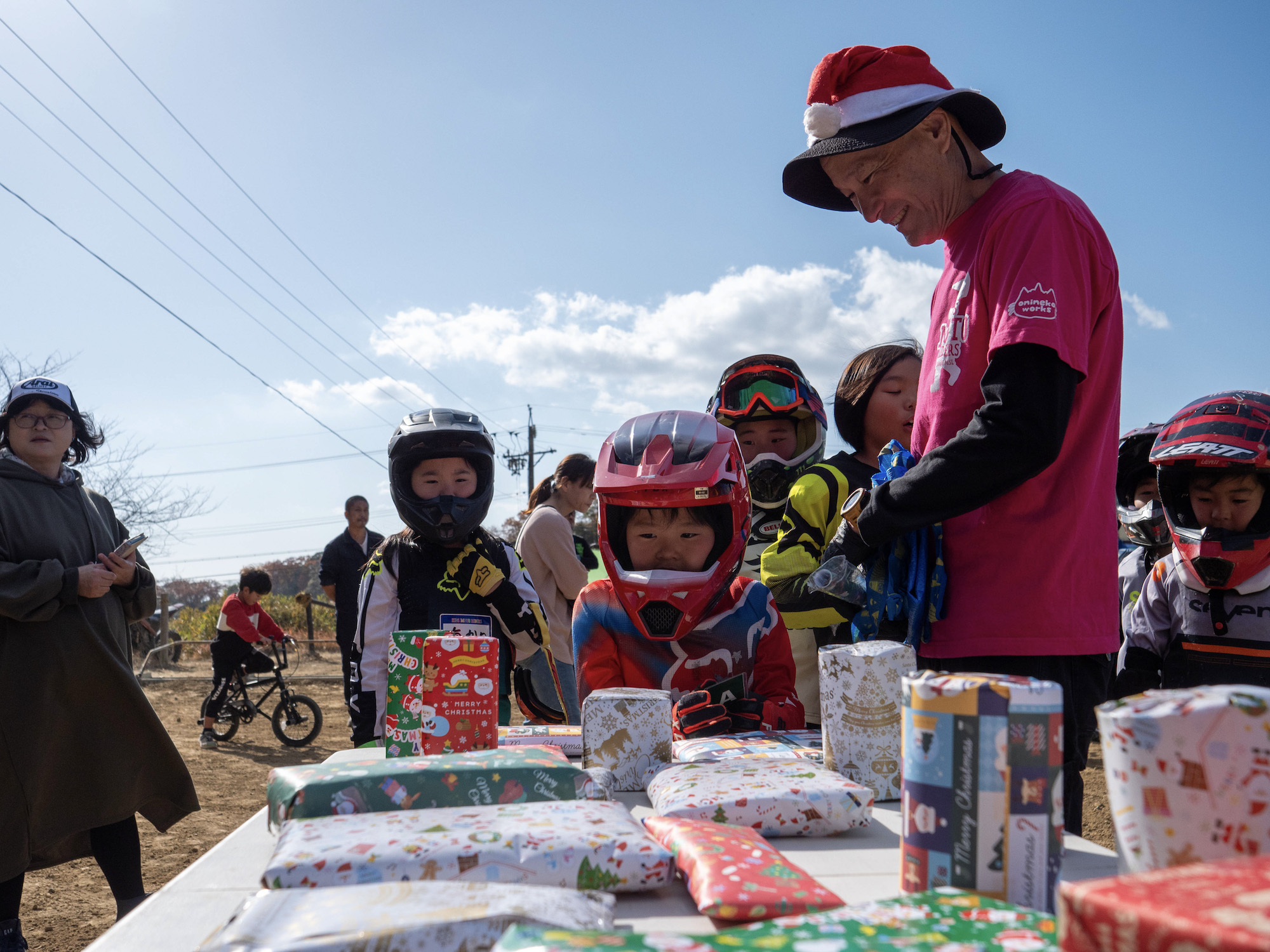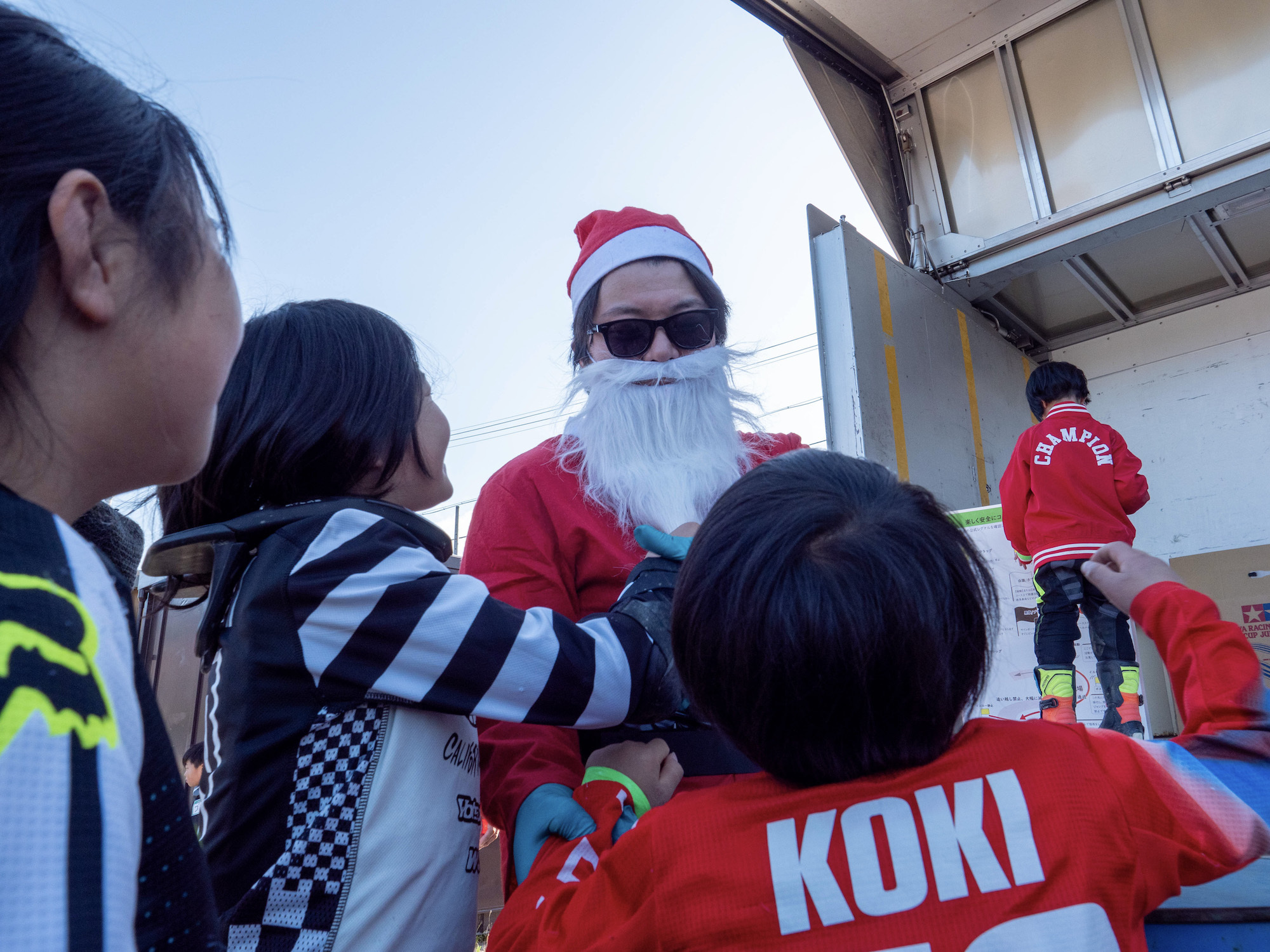 クリスマススペシャルということで、毎年恒例のサンタチームリレーも行いました。チームに分かれてプレゼントをゲット! 協力し合ってゴールを目指します。KTMの電動バイクは初めて乗るキッズも簡単に操作ができるので、みんなに大人気!最後はサンタさんからプレゼントをもらって、メリークリスマス!