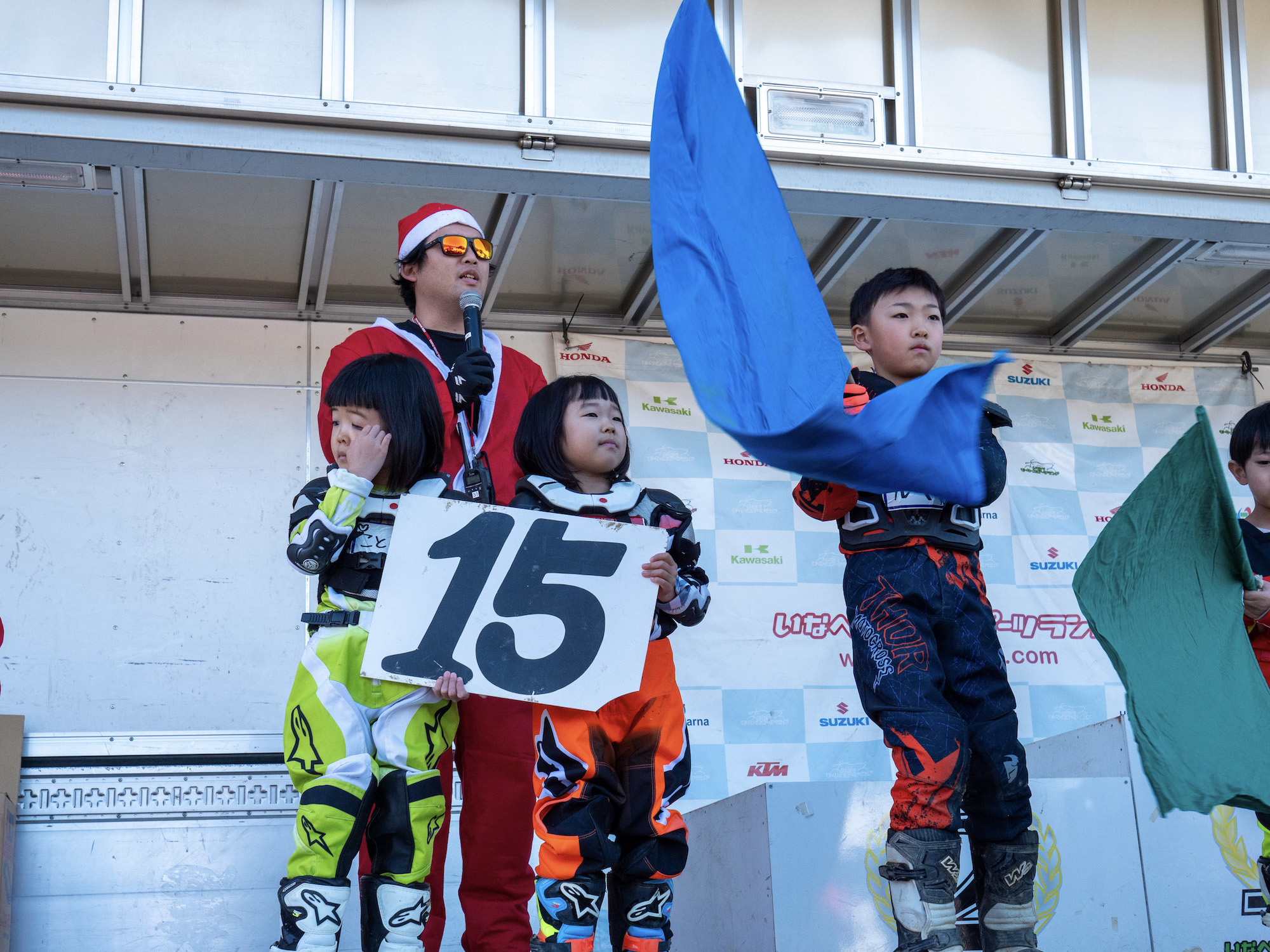 もちろんメインレースもみんな全力で走りました。キッズ50クラスはA1(スピードに自信あり)クラスとA2クラスに分けて行いましたが、A2クラスはフルグリッド。A2で入賞したキッズには、次回はA1クラスにチャレンジしてもらっています!楽しむことが第一のキッズレース。「友だちと走れて楽しい」「ジャンプが飛べるようになって楽しい」「勝ててうれしい」など、それぞれのいろんな楽しいを見つけてもらえるといいなと思っています。