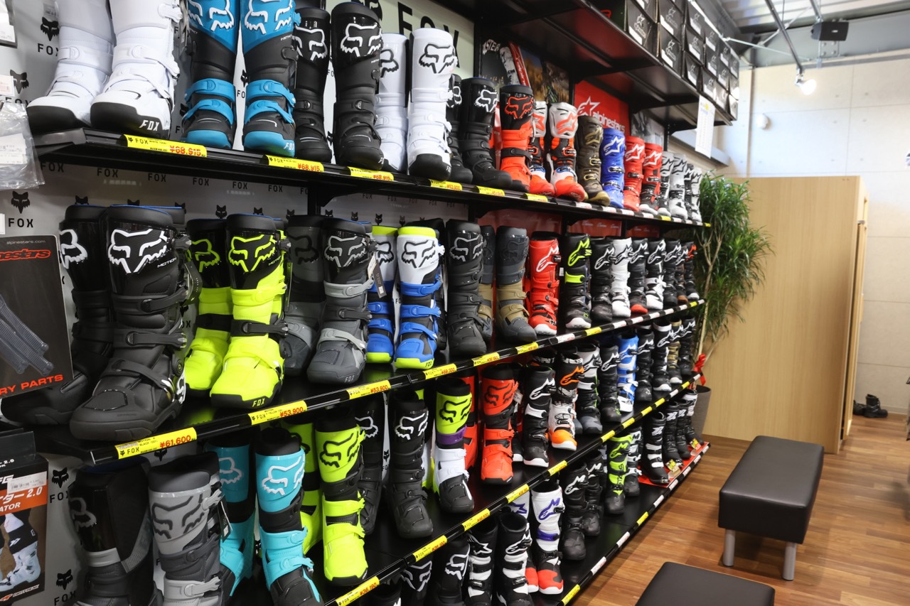 ヘルメットやタイヤ、外装パーツ、ウエア、ブーツなど、充実のラインナップです! キッズやレディース用ラインナップも豊富ですし、詳しいスタッフに相談しながら買い物できるので安心。