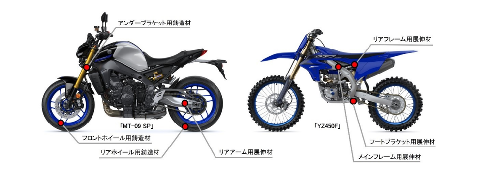 その中で将来的にYZ450Fのメインフレーム、リアフレーム、フットブラケット、の展伸材に採用する計画であることも発表されました。