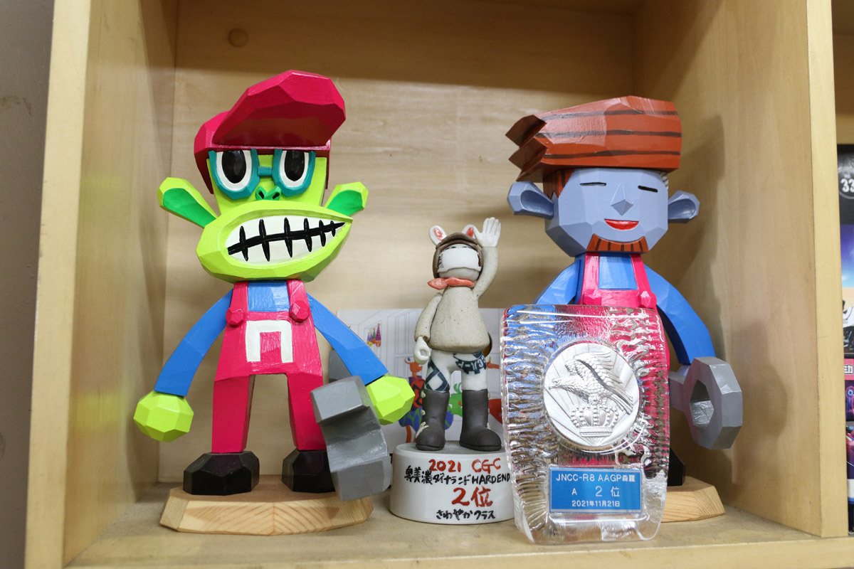 世界的に活躍中の木彫りアーチスト、森寸氏による高橋店長の木彫りが、そのままニュートンのキャラクターに。有名になる以前に、二人はオフロードバイク繋がりだったのだ