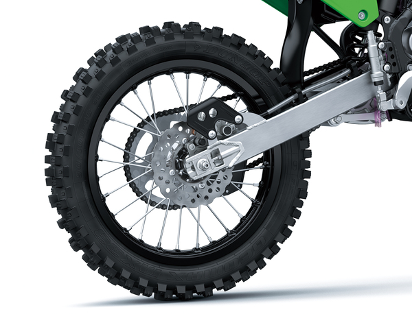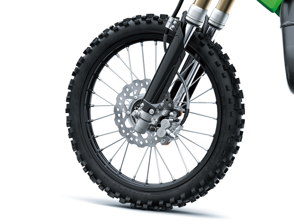 KX112は前後ダンロップMX33タイヤを標準装備とし、xH務6?倒立フロントフォーク、ペタルディスクブレーキ等はKX85/100より踏襲する。