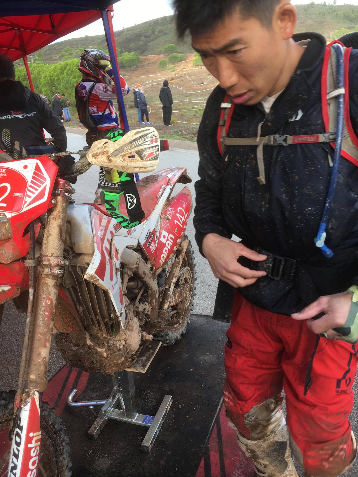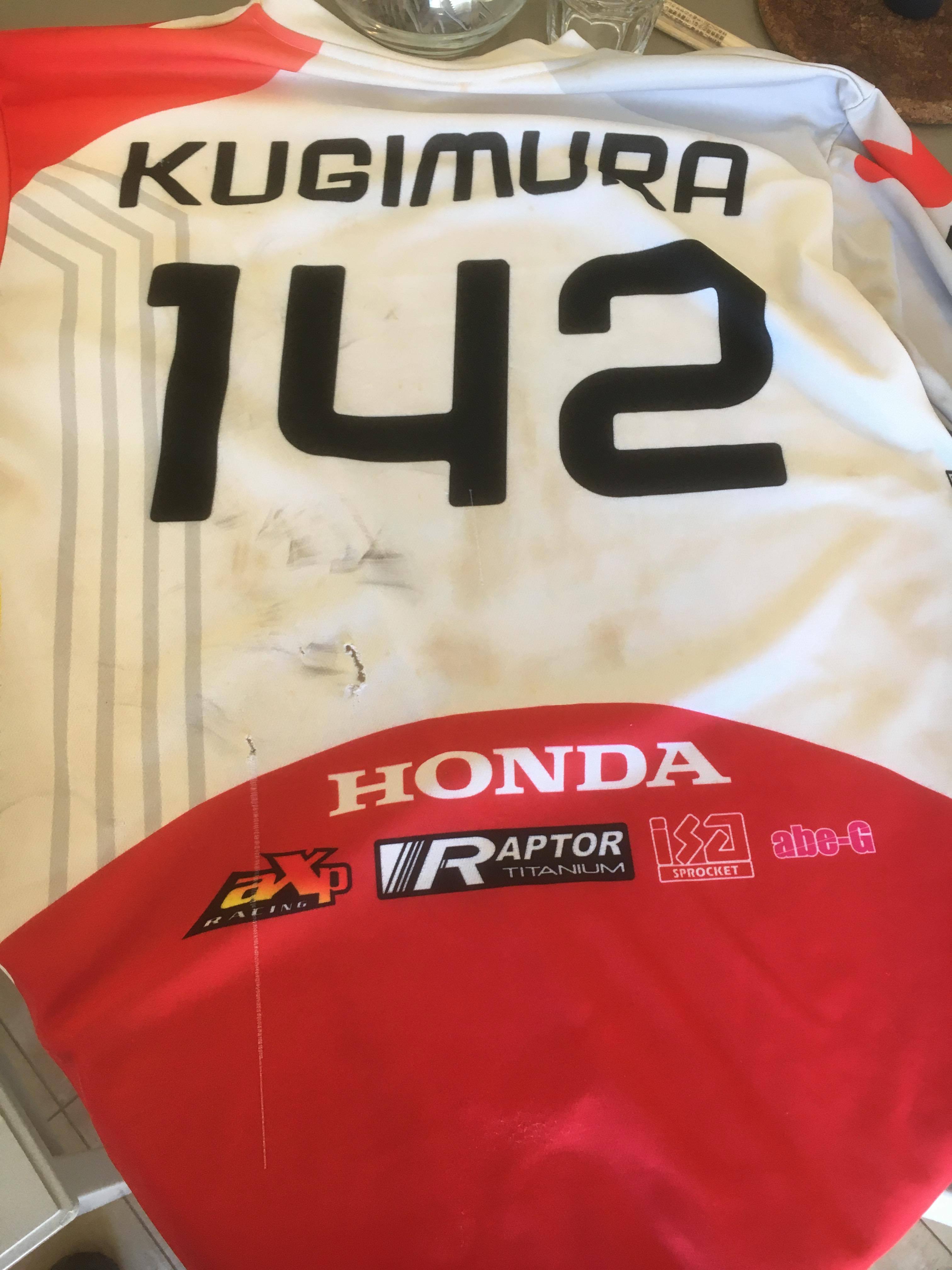 5日目に転倒し自分のバイクにひかれウェアがボロボロに。。。