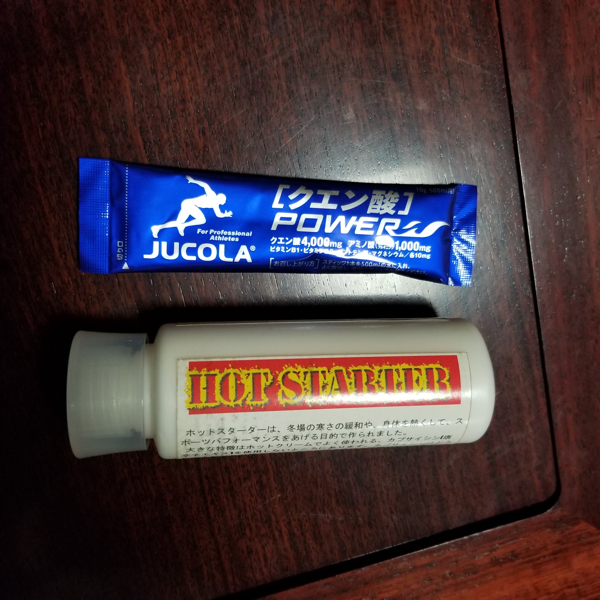 ISDEに限らず、この2点セットは絶対必須!!! クエン酸パワーは運動前〜運動中〜運動後まで必ず飲んでいました! ハードに屈指した体の筋肉に溜まる乳酸をエネルギーに変える働きがあり、次の日の体がとても楽になります。そしてホットスターターは寒い時期にピッタリなアイテム! ジンジャーエキスが入っており、クリームなので塗る所を選ばずヒリヒリもしません。塗るとジワジワ暖かくなります。過酷なISDEで寒い走行中も助けられました