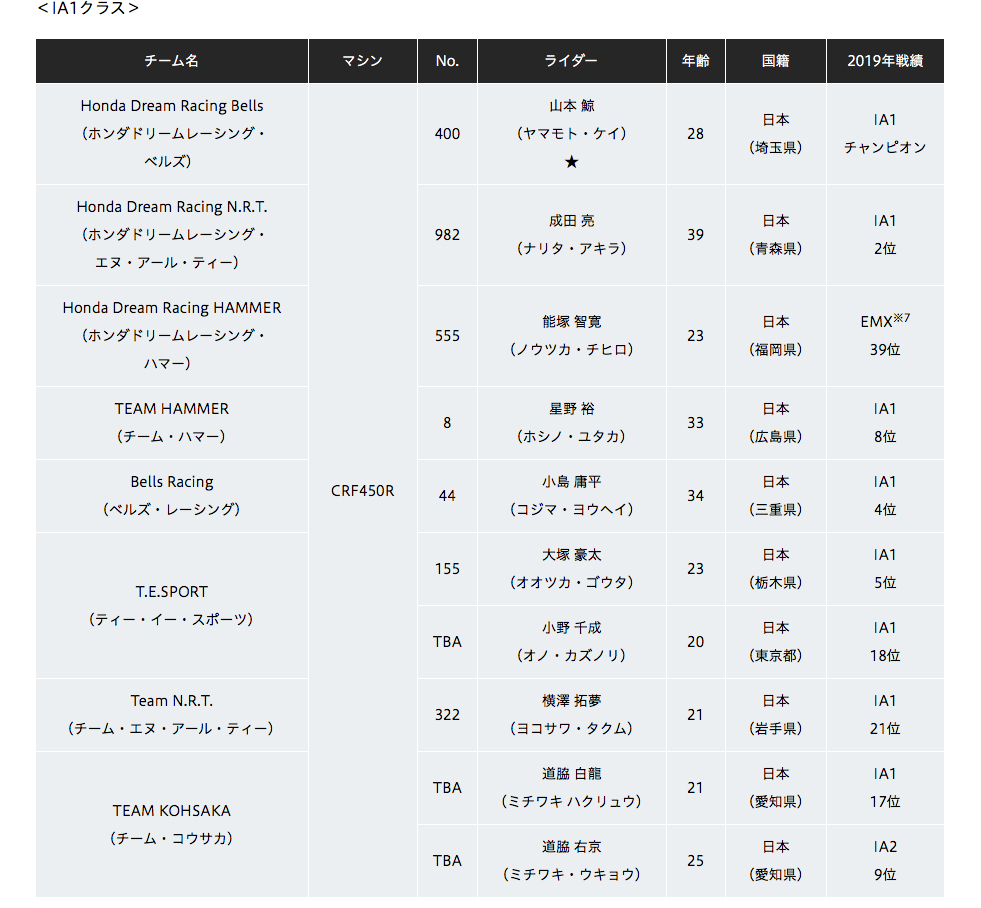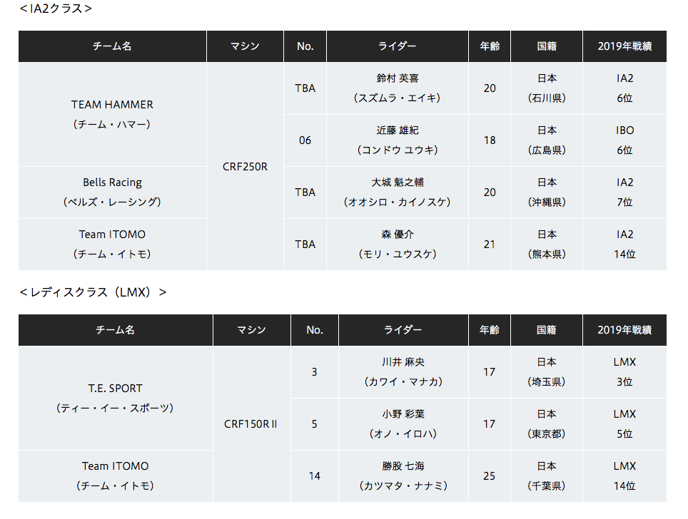 残念ながらTeam HRC(ホンダワークス)は解散消滅してしまいましたが、これらのチームがそれに代わるものと思われます。