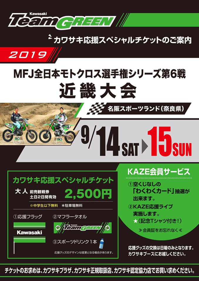 通常の前売券と同額でフラッグとマフラータオル、そしてホスピ入場券、フリードリンクサービス(スポドリ1本から変更しました)の付いたカワサキ応援チケットは全国のカワサキ正規取扱店で購入出来ます。