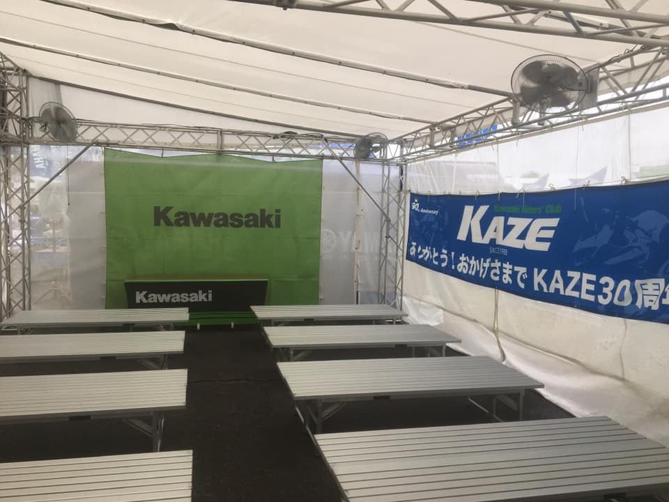 レースまであと2週間となりました。今年は設置予定の無かったカワサキホスピブース(休憩スペース)ですが、急きょ設置する運びとなりました。