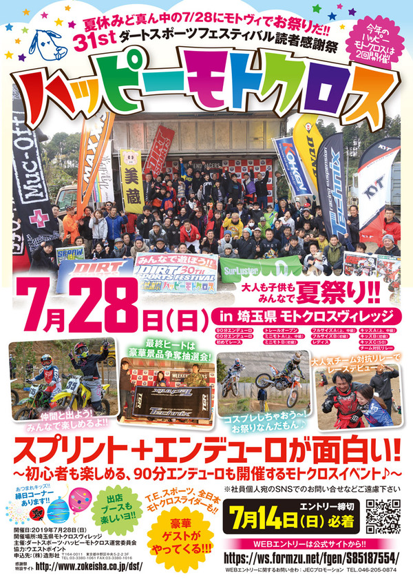 誰もが楽しめるモトクロス夏の祭典31stハッピーモトクロス(日時:7月28日/会場:埼玉県モトクロスヴィレッジ)の事前エントリーは明日7月14日となっております。